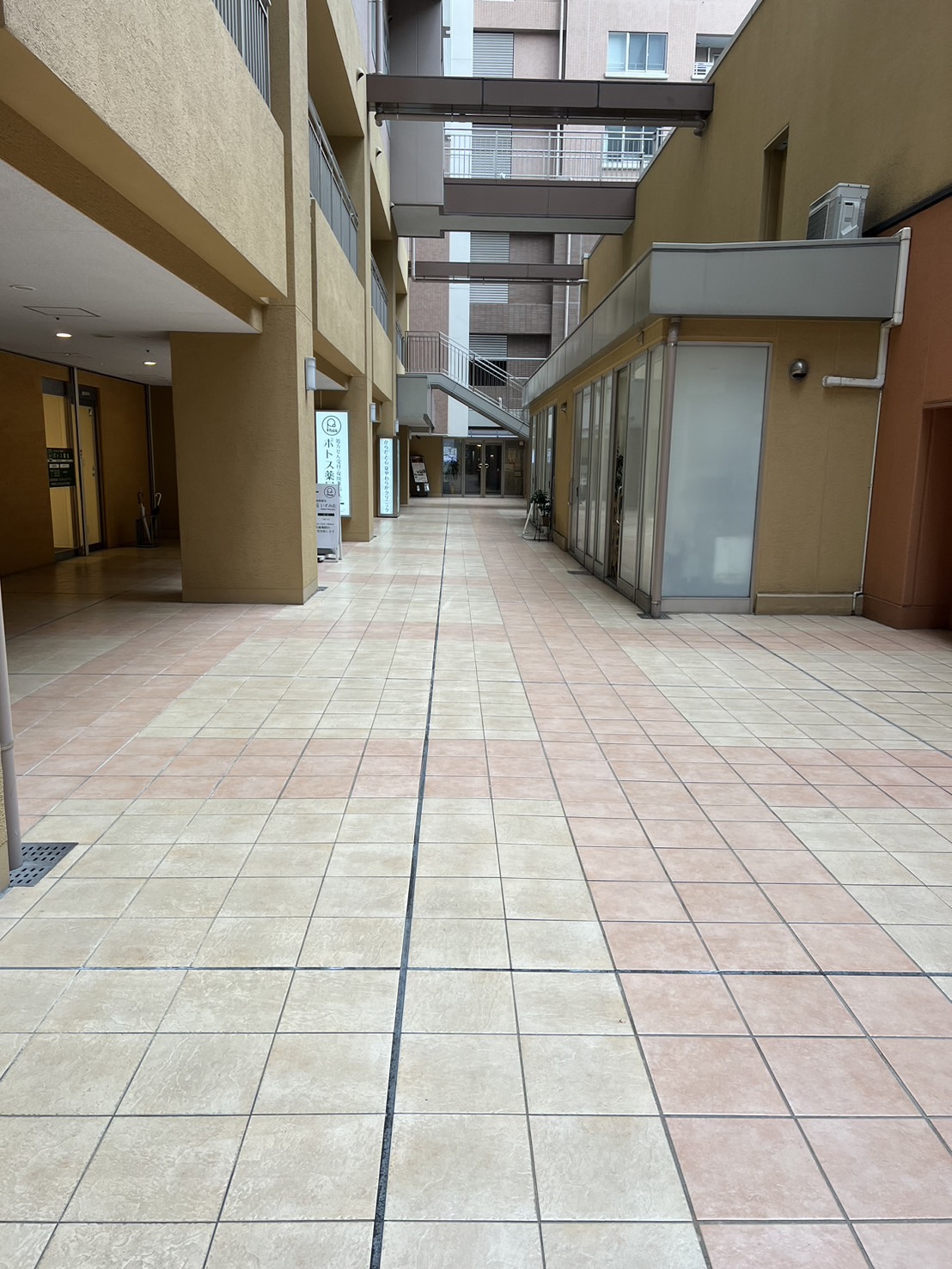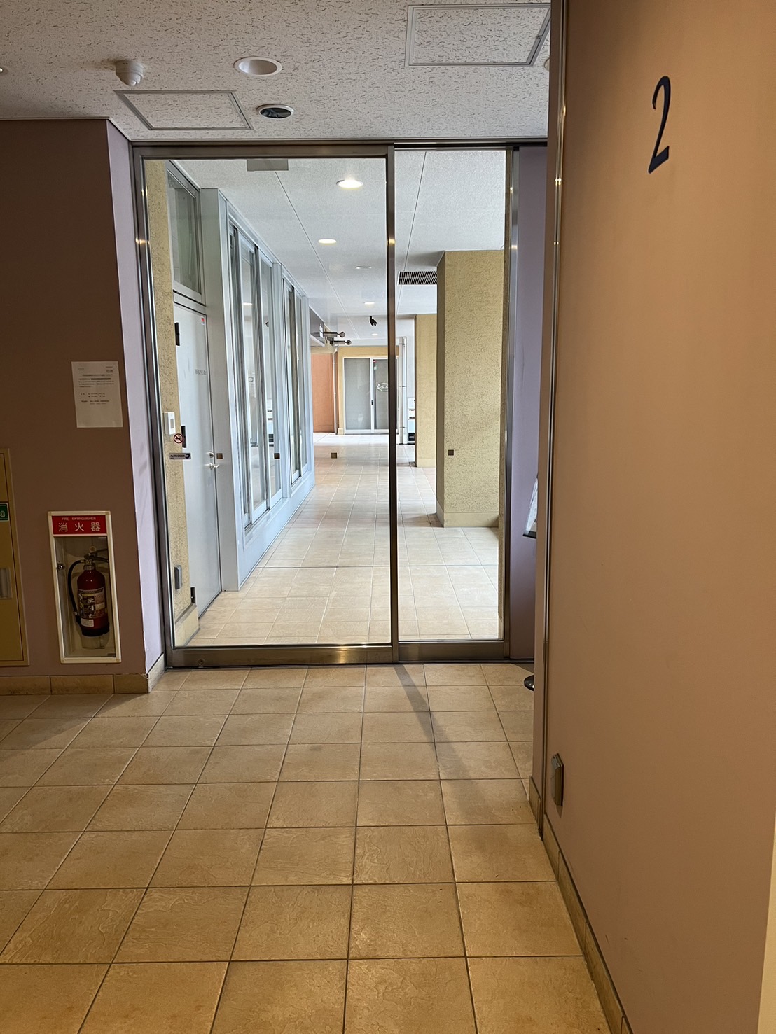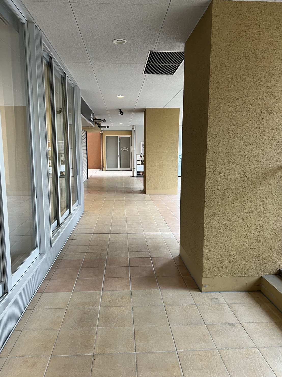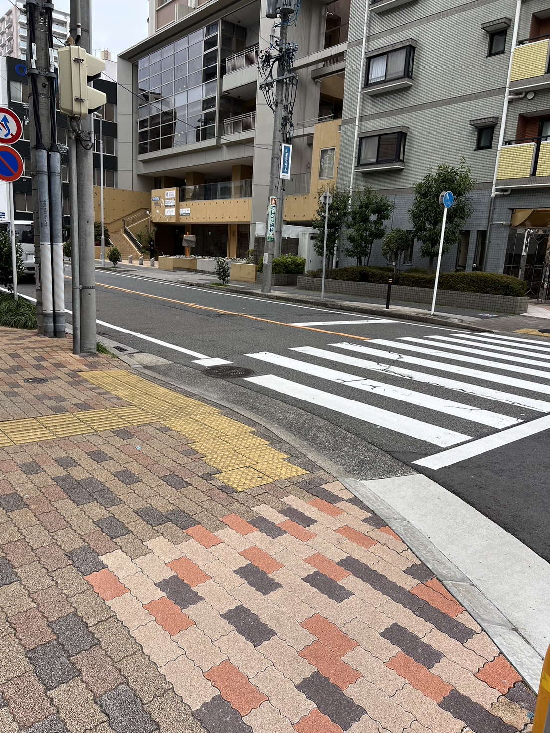 8. 泉一丁目西交差点を渡ると外階段のあるベージュの建物です