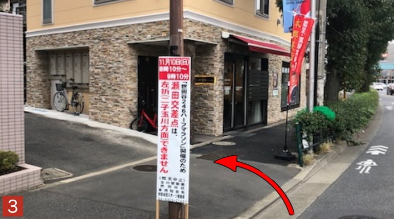 ※瀬田中学校の信号まで行かれた方は、手前を鋭角に左折し、お知らせ下さい。