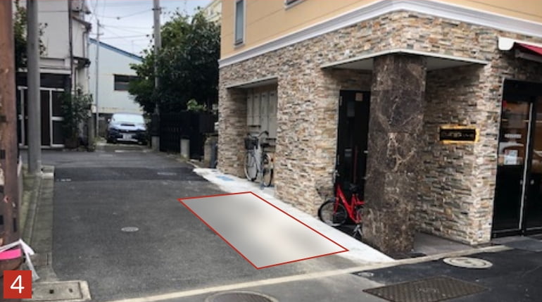 店の前に車を止め、お声掛けください。駐車場をご案内します。(車は脇道を先に抜けれます)