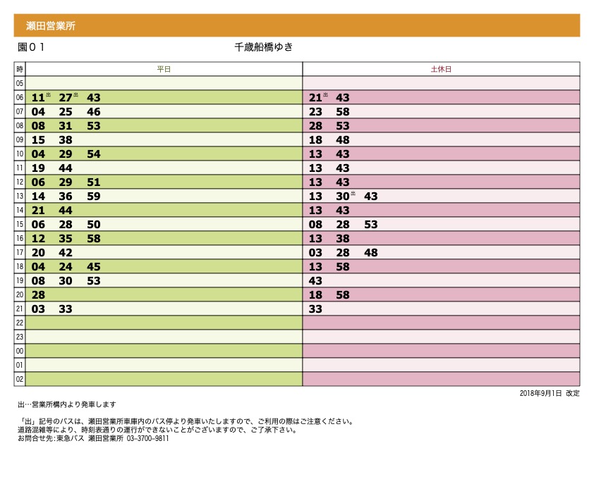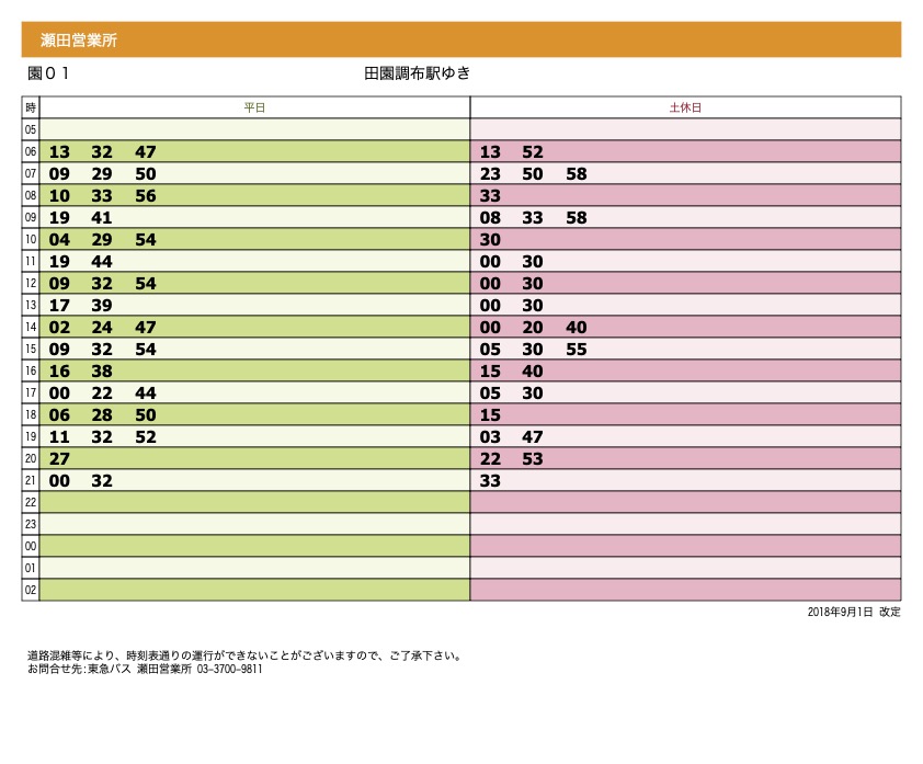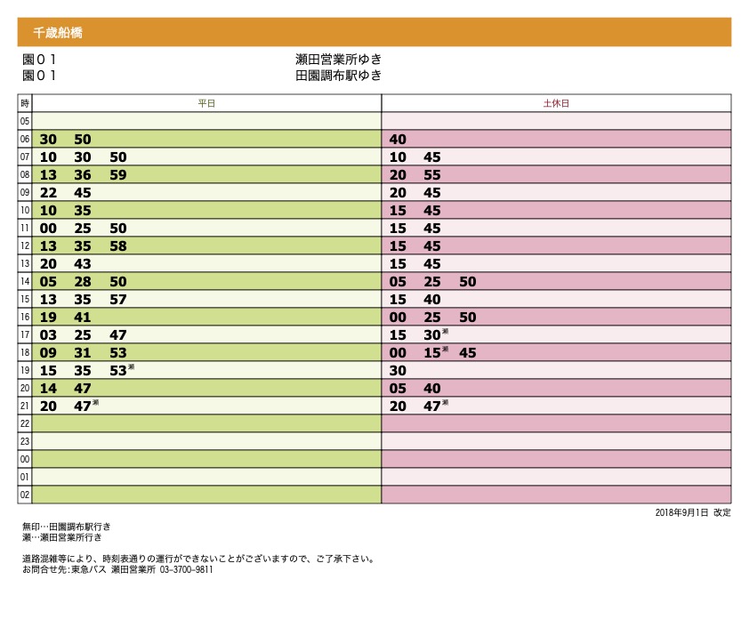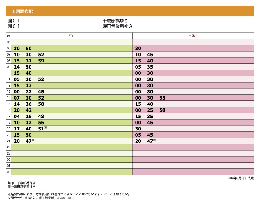 ↓田園調布駅から(系統:園01) 千歳船橋駅または瀬田営業所ゆき